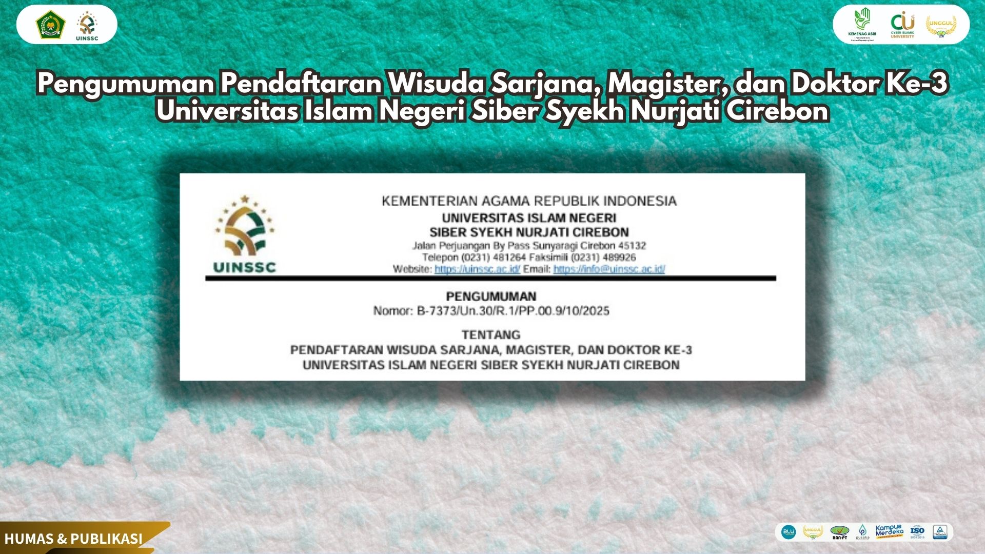 Pengumuman Pendaftaran Wisuda Sarjana, Magister, dan Doktor Ke-3 Universitas Islam Negeri Siber Syekh Nurjati Cirebon 28 Oktober 2025