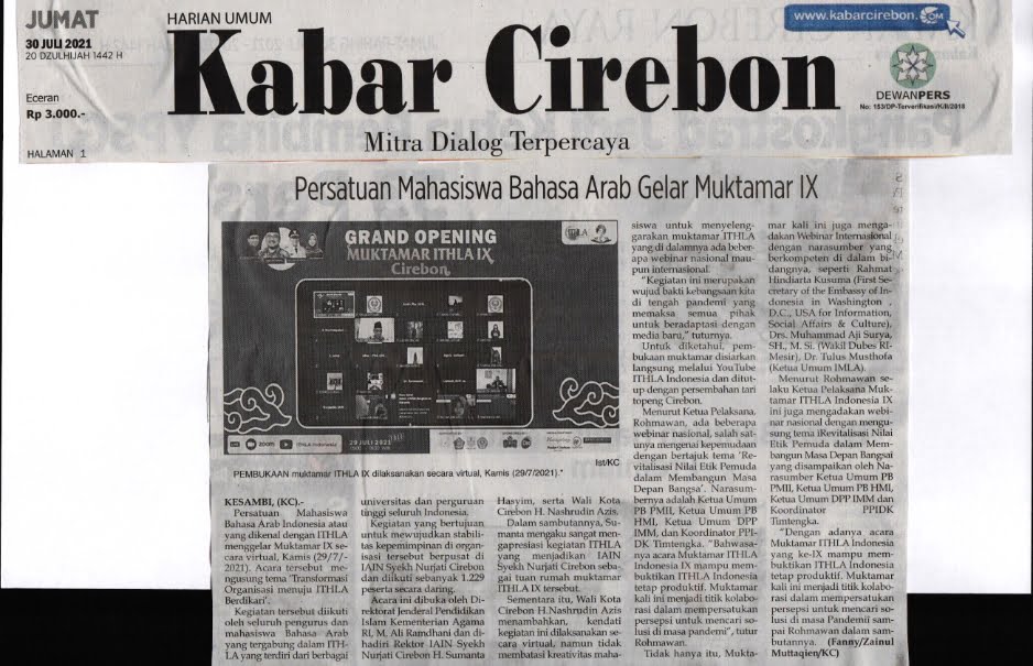 Persatuan Mahasiswa Bahasa Arab Gelar Muktamar IX (Kabar Cirebon/30 Juli 2021)