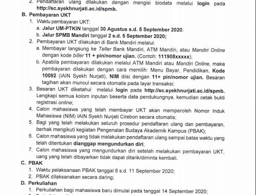 Perubahan Jadwal Pendaftaran Ulang Mahasiswa Baru 2020 26 Agustus 2020 arifin Pengumuman 0 Humas dan Publikasiiain cirebonIAIN Syekh Nurjati CirebonUIN