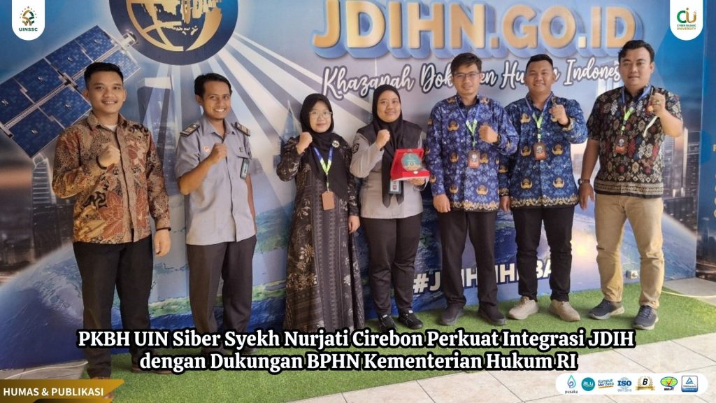 UIN Siber Cirebon (Jakarta) – Pusat Konsultasi dan Bantuan Hukum (PKBH) UIN Siber Syekh Nurjati Cirebon terus berinovasi dalam mendukung transparansi hukum melalui pengembangan Jaringan Dokumentasi dan Informasi Hukum (JDIH). Dalam upaya mewujudkan integrasi sistem JDIH UIN SSC dengan Jaringan Dokumentasi dan Informasi Hukum Nasional (JDIHN) yang dikelola oleh Badan Pembinaan Hukum Nasional (BPHN), Kementerian Hukum RI, PKBH UIN SSC telah melakukan kunjungan kerja ke Pusat JDIHN pada Senin, 25 November 2024.
