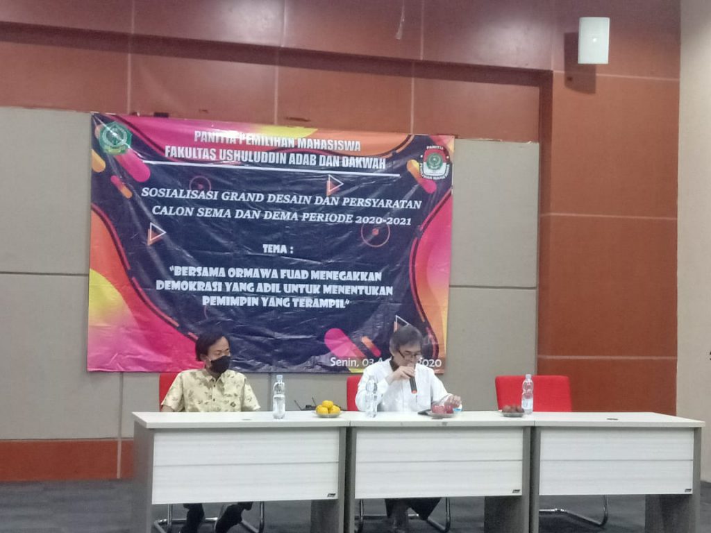 Panitia Pemilihan Mahasiswa Fakultas (PPM-F) Ushuluddin Adab dan Dakwah Institut Agama Islam Negeri (IAIN) Syekh Nurjati Cirebon menggelar sosialisasi grand desain dan persyaratan calon Senat Mahasisswa (SEMA) dan Dewan Mahasiswa (DEMA) periode 2020-2021