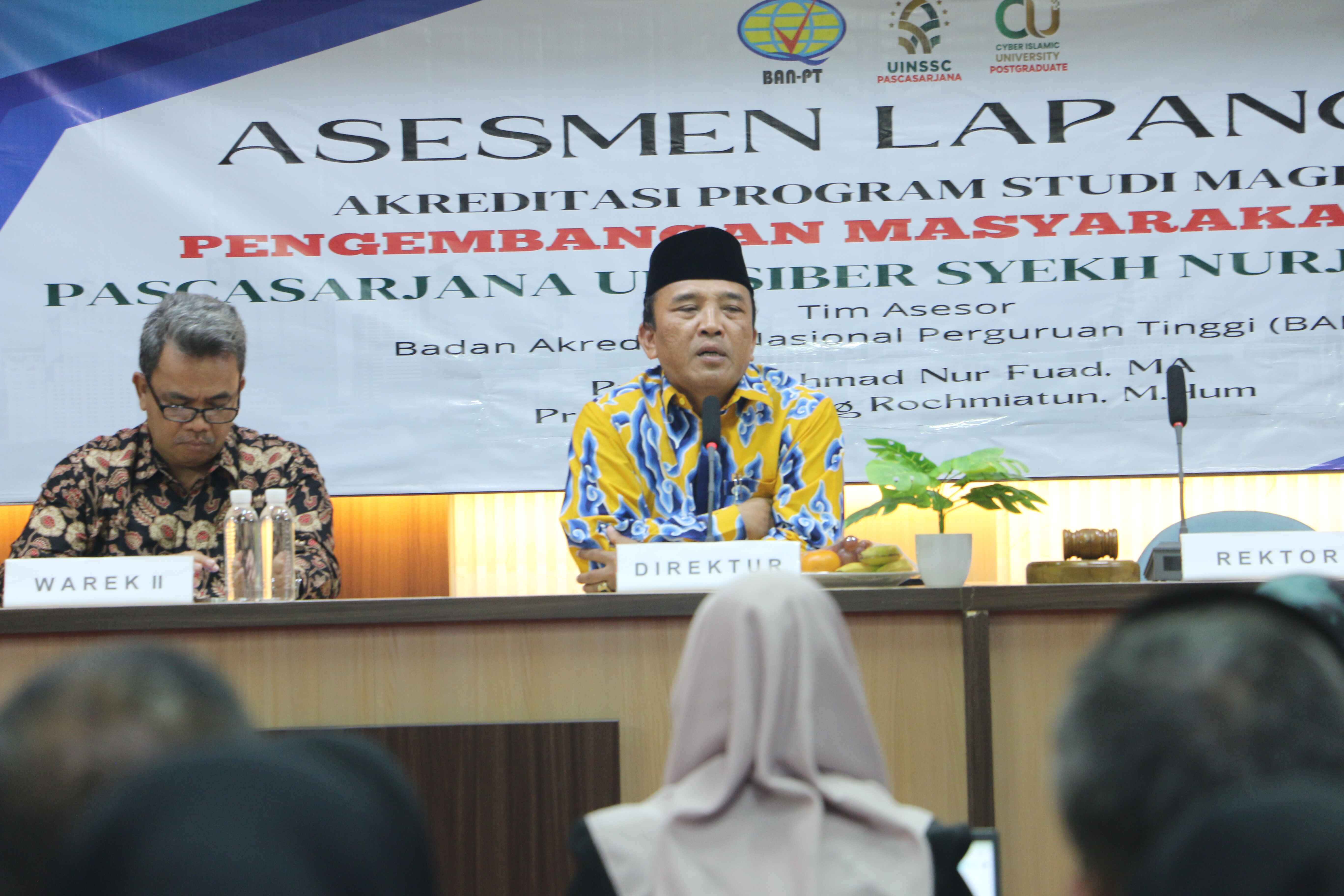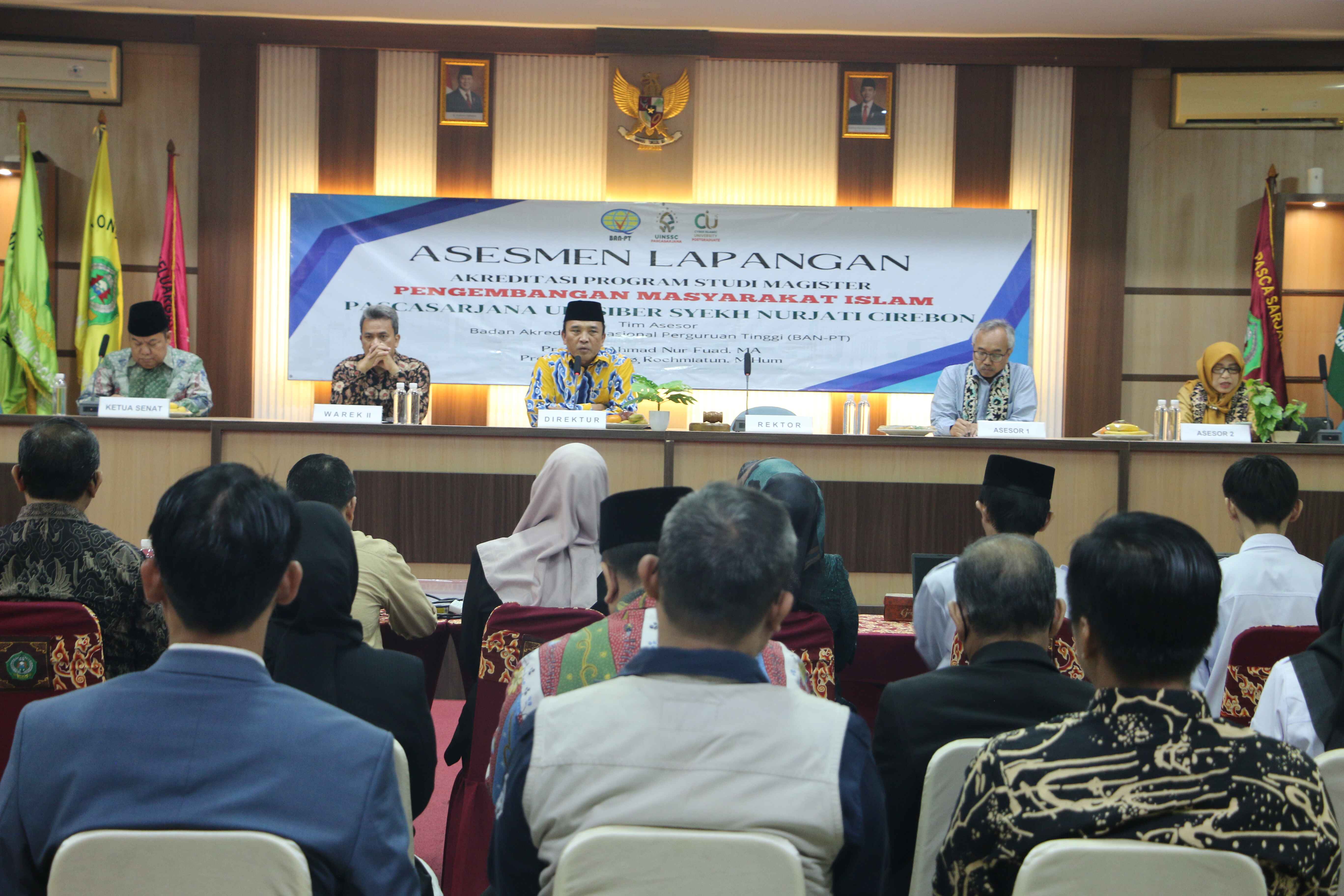 UIN Siber Cirebon – Program Studi Magister Pengembangan Masyarakat Islam (PMI) Program Pascasarjana Universitas Islam Negeri (UIN) Siber Syekh Nurjati Cirebon, yang juga dikenal sebagai Cyber Islamic University (CIU), melaksanakan asesmen lapangan oleh Badan Akreditasi Nasional Perguruan Tinggi (BAN-PT) pada Rabu, 20 November 2024. Kegiatan berlangsung di ruang sidang Pascasarjana dengan menghadirkan dua asesor BAN-PT, yakni Prof. Dr. Ahmad Nur Fuad, M.A., dan Prof. Dr. Endang Rochmiatun, M.Hum.