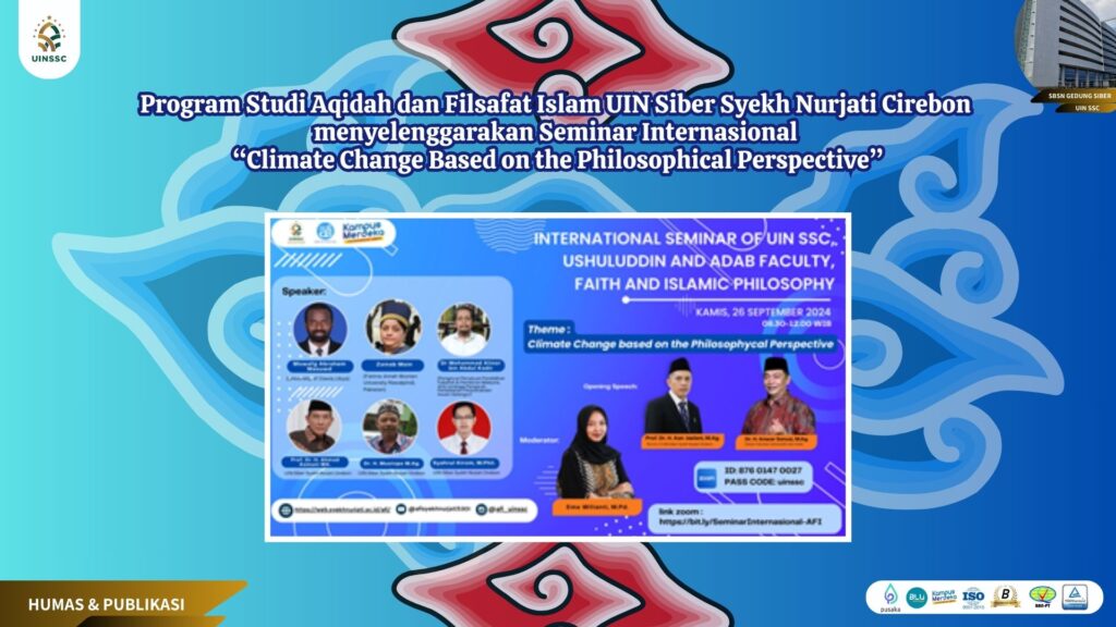 UIN Siber Cirebon – Dalam upaya meningkatkan daya saing di tingkat internasional, Program Studi Aqidah dan Filsafat Islam, Fakultas Ushuluddin dan Adab, UIN Siber Syekh Nurjati Cirebon, yang juga dikenal sebagai Cyber Islamic University (CIU), sukses menggelar Seminar Internasional bertajuk “Climate Change Based on the Philosophical Perspective.” Acara ini bertujuan untuk mengeksplorasi isu perubahan iklim dari sudut pandang filosofis dan agama, sekaligus menawarkan wawasan mendalam tentang bagaimana refleksi filosofis dapat berperan dalam upaya mitigasi dan adaptasi terhadap perubahan iklim.
