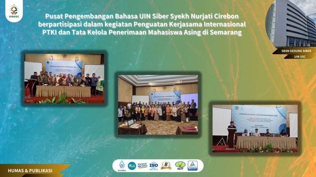 UIN Siber Cirebon (Semarang) – Pusat Pengembangan Bahasa (PPB) UIN Siber Syekh Nurjati Cirebon berpartisipasi dalam kegiatan Penguatan Kerjasama Internasional Pendidikan Tinggi Keagamaan Islam. Acara ini secara resmi dibuka oleh Kasubdit Kelembagaan dan Kerjasama, yang dihadiri oleh berbagai perwakilan dari institusi pendidikan tinggi keagamaan Islam se Indonesia.