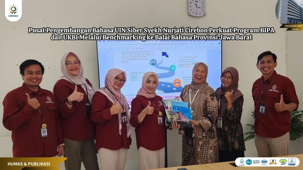 UIN Siber Cirebon (Bandung) – Dalam upaya memperkuat Program Bahasa Indonesia untuk Penutur Asing (BIPA) dan Uji Kemahiran Berbahasa Indonesia (UKBI), Pusat Pengembangan Bahasa (PPB) Universitas Islam Negeri Siber Syekh Nurjati Cirebon, yang juga dikenal sebagai Cyber Islamic University (CIU), melakukan benchmarking ke Balai Bahasa Provinsi Jawa Barat pada Selasa, (01/10/2024). Langkah ini diambil untuk meningkatkan kualitas dan efektivitas pengajaran bahasa Indonesia, serta mengukuhkan daya saing UIN Siber Syekh Nurjati Cirebon di kancah internasional.