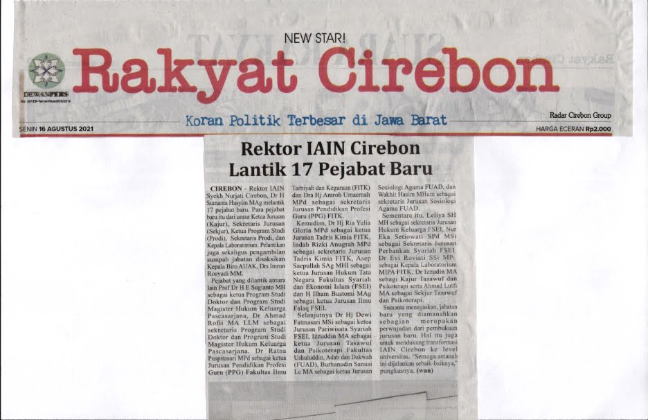 Home » Pos » Kliping Digital » Rektor IAIN Cirebon Lantik 17 Pejabat Baru (Rakyat Cirebon/16 Agustus 2021)