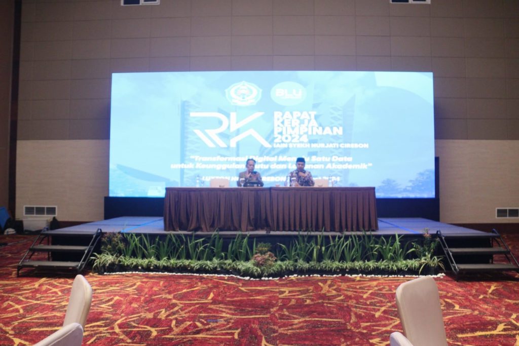 IAIN Cirebon – Rektor IAIN Syekh Nurjati Cirebon, Prof Dr H Aan Jaelani, M.Ag., merinci hasil kontribusinya dalam kegiatan Rapat Kerja Nasional (Rakernas) Kementerian Agama RI kedalam egiatan Rapat Kerja Pimpinan IAIN Syekh Nurjati Cirebon, dengan mengangkat tema “Transformasi Digital Menuju Satu Data untuk Keunggulan Mutu dan Layanan Akademik,” yang berlangsung pada Jumat, (01/03/2024).