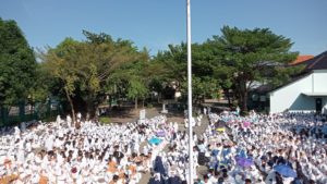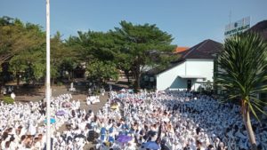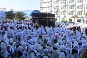 UIN Siber Cirebon – Ribuan mahasiswa UIN Siber Syekh Nurjati Cirebon menggemakan kalimat Talbiyah “Labbaikallahumma labbaik, labbaika la syarika laka labbaik. Innal hamda wan ni’mata laka wal mulk. La syarika laka.” di kampus mereka pada Minggu, 14 Juli 2024. Kalimat ini yang berarti “Aku datang memenuhi panggilan-Mu ya Allah, aku datang memenuhi panggilan-Mu, aku datang memenuhi panggilan-Mu, tiada sekutu bagi-Mu, aku datang memenuhi panggilan-Mu,” menggaung mengiringi semangat mereka dalam mengikuti rangkaian Praktek Ibadah Manasik Haji dan Umroh yang digelar oleh Ma’had Al-Jamiah UIN Siber Syekh Nurjati Cirebon.