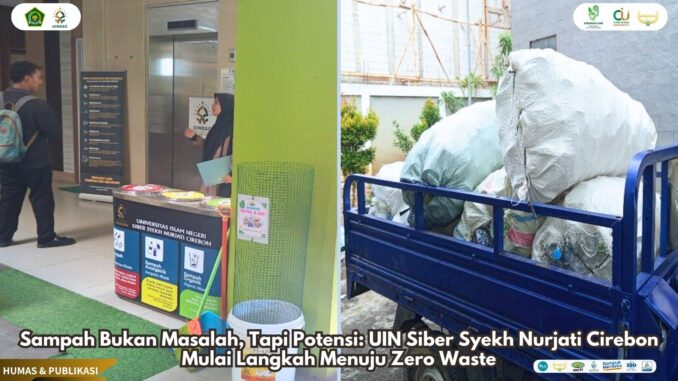UIN Siber Cirebon — Universitas Islam Negeri (UIN) Siber Syekh Nurjati Cirebon mulai menapaki langkah serius menuju Kampus Zero Waste. Sejak akhir Agustus lalu, kampus ini resmi menerapkan program pemilahan sampah di seluruh area kampus—sebuah inisiatif kolaboratif antara civitas akademika, mahasiswa, petugas kebersihan, dan (LP2M) Lembaga Penelitian dan Pengabdian kepada Masyarakat. (28/10).