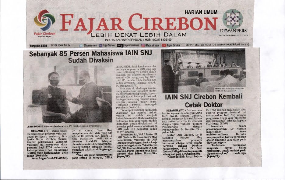 Sebanyak 85 Persen Mahasiswa IAIN SNJ Sudah Divaksin (Fajar Cirebon/23 Agustus 2021)