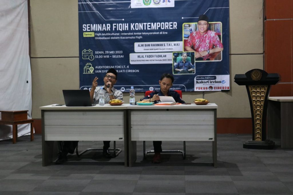 Himpunan Mahasiswa Ilmu Al-Qur’an dan Tafsir (HMJ IQTAF) IAIN Syekh Nurjati Cirebon menggelar Seminar Fikih Kontemporer mengusung tema “Fiqih Multikultural Interaksi Antar Masyarakat di Era Globalisasi dalam Kacamata Fiqih” dengan pemateri Alwi Bani Rakhman, S.T.H.I, M.H.I., seorang Dosen dari IAIN Syekh Nurjati Cirebon yang mengajar di Jurusan Ilmu Al-Qur’an dan Tafsir dan Jurusan Ilmu Hadis. Kegiatan secara resmi dibuka oleh Abdul Azizul Hakim selaku Ketua Umum Senat Mahasiswa (SEMA) Fakultas Ushuluddin dan Adab (F-UA). Senin. (29-05-2023)