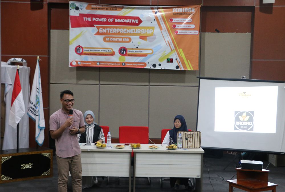 Himpunan Mahasiswa Jursan Tadris Ilmu Pengetahuan Sosisal (HIMASOS) menggelar kegiatan seminar kewirausahaan dengan tema “The Power of Innovative Enterpreneurship in Digital Era” yang dihadiri 50 peserta yang terdiri dari mahasiswa IAIN Syekh Nurjati Cirebon dan tamu undangan. Tamu undangan yang hadir Dr. Nuryana, S.Ag., M.Pd (Kajur IPS), Dr. H. Saefudin, M.Ag (Wadek III F-ITK), Nindia Nuraeni (Moderator), Perwakilan Ormawa dan Alumni. Sebagai narasumber Agus Nurrohman Siddiq, SE ( Owener Maomao & MaKece). Tujuan kegiatan tersebut adalah melahirkan enterpreneurship-enterpreneurship muda khususnya di IAIN Syekh Nurjati Cirebon. Kegiatan dilaksanakan di Auditorium Fakultas Ushuluddin Adab dan Dakwah (F-UAD) lantai 4. Kamis (20/06).