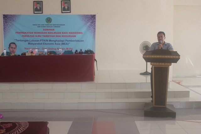 Rabu, 18 Mei 2016 Fakultas Ilmu Tarbiyah dan Keguruan menggelar acara Seminar Peningkatan Wawasan Keilmuan bagi Mahasiswa FITK IAIN Syekh Nurjati Cirebon di Gedung Pascasarjan lt.3 dengan mengangkat tema ” Tantangan Lulusan PTKIN Menghadapi Pemberlakuan Masyarakat Ekonomi Asia (MEA), dengan menghadirkan Dr. H. Diding Nurdin, M. Pd (Dosen UPI Bandung) sebagai Narasumber dalam acara seminar tersebut.