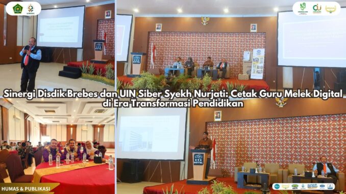 UIN Siber Cirebon (Brebes) — Dalam upaya memperkuat kapasitas pendidik menghadapi tantangan transformasi digital di dunia pendidikan, Dinas Pendidikan, Pemuda dan Olahraga (Disdikpora) Kabupaten Brebes berkolaborasi dengan Program Pascasarjana Universitas Islam Negeri (UIN) Siber Syekh Nurjati Cirebon dalam kegiatan Pelatihan Guru bertema “Kompetensi Guru Menghadapi Digitalisasi Pendidikan” pada Jum’at (31/10/2025), bertempat di Hotel Grand Dian Brebes.
