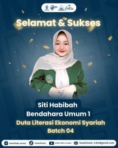 UIN Siber Cirebon — Kabar membanggakan kembali datang dari Kelompok Studi Ekonomi Islam (KASEI) Fakultas Ekonomi dan Bisnis Islam (FEBI) UIN Siber Syekh Nurjati Cirebon. Salah satu anggotanya yang juga menjabat sebagai Bendahara Umum I KASEI, Siti Habibah, resmi terpilih sebagai Duta Literasi Ekonomi Syariah (DLES) Batch 04 tingkat nasional. (15/5).