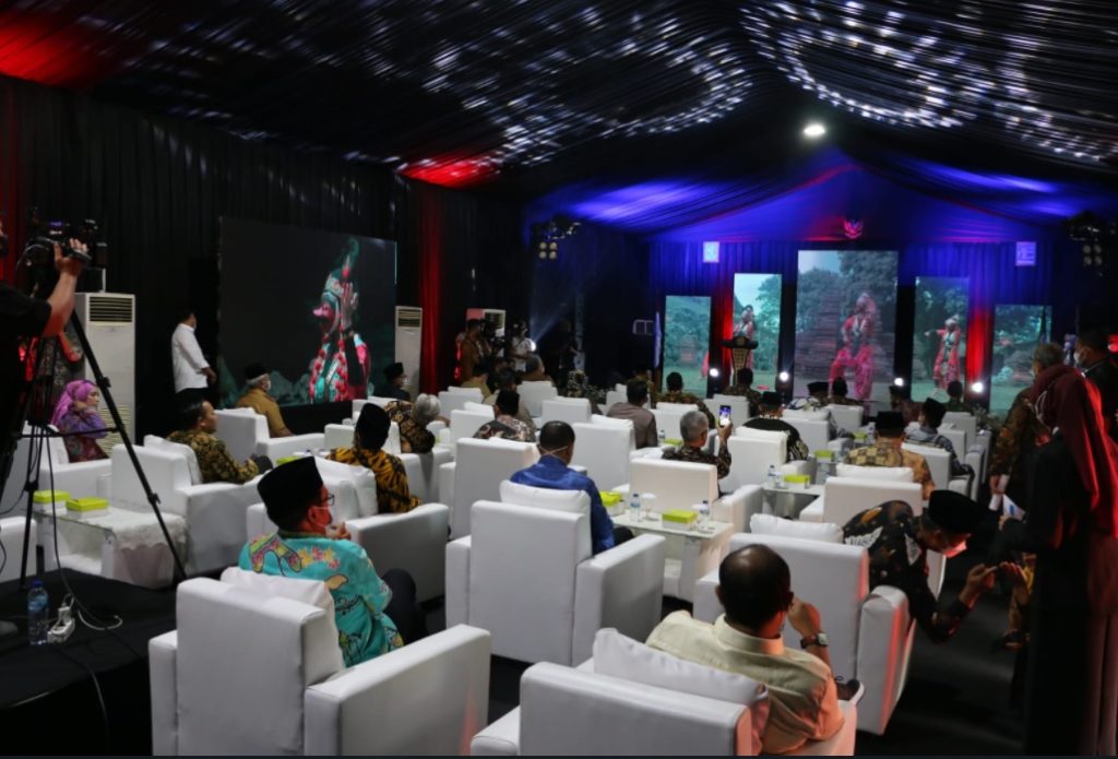 KH. Yaqut Qoumas (Menteri Agama RI), memberikan sambutannya sekaligus melaunching Pendidikan Jarak Jauh (PJJ) yang merupakan program beliau pada masa kerjanya bertempat di lingkungan IAIN Syekh Nurjati Cirebon yang sedang beralih status jadi IAIN menuju Universitas Islam Siber Syekhnurjati Indonesia