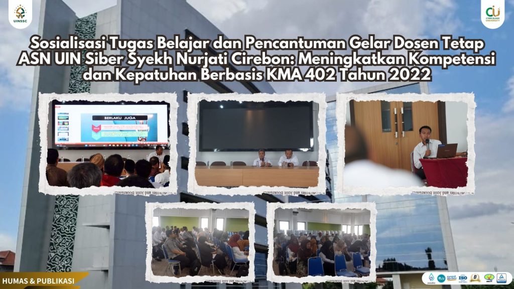 Sementara itu, Prof. Dr. H. Jamali, M.Ag., Wakil Rektor I Bidang Akademik dan Pengembangan Kelembagaan, juga menyoroti urgensi kegiatan ini. Menurut Prof. Jamali, sosialisasi ini sangat krusial untuk memastikan bahwa semua dosen tetap ASN di UIN Siber Syekh Nurjati Cirebon memahami aturan yang berlaku, khususnya terkait dengan Keputusan Menteri Agama Republik Indonesia Nomor 402 Tahun 2022 yang mengatur pengembangan kompetensi melalui pendidikan dan pencantuman gelar akademik.