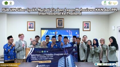 10 November 2025 • 63 Views • FUA UIN Siber Syekh Nurjati Cirebon Lepas Mahasiswa KKN dan PPL Internasional ke Thailand UIN Siber Cirebon — Fakultas Ushuluddin dan Adab (FUA) UIN Siber Syekh Nurjati Cirebon menggelar... Berita Kegiatan Pojok Rektor