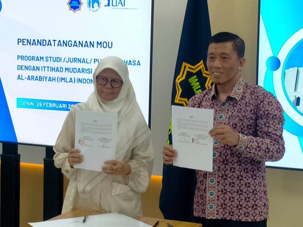 Pada saat yang sama, perwakilan Pusat Pengembangan Bahasa IAIN Syekh Nurjati Cirebon, Dra Hj Darrojatul Jannah, M.Ag, yang juga menjabat sebagai Ketua PPB, melakukan penandatanganan Memorandum of Understanding (MOU) dengan Pengurus Pusat IMLA Indonesia. Prof. Dr. Uril Bahruddin, MA, selaku Ketua Umum Pengurus Pusat IMLA Indonesia, mewakili pihak IMLA Indonesia dalam penandatanganan tersebut.