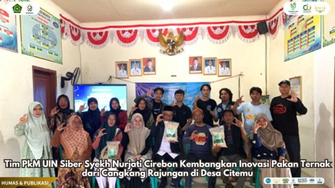 UIN Siber Cirebon — Tim Pengabdian kepada Masyarakat (PkM) UIN Siber Syekh Nurjati Cirebon kembali menghadirkan inovasi ramah lingkungan dengan memanfaatkan limbah cangkang rajungan sebagai bahan dasar pakan ternak. Kegiatan ini merupakan lanjutan dari program PkM tahun sebelumnya yang dilaksanakan di Desa Citemu, Kabupaten Cirebon, dengan tema “Inovasi Pakan Ternak dari Cangkang Rajungan untuk Kemandirian Ekonomi Masyarakat Citemu Berbasis Eco Feed.”(26/10).