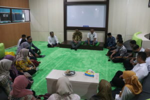 Sesi diskusi antara UPT Perpustakaan IAIN Cirebon dan UIN Salatiga di panggung Literasi