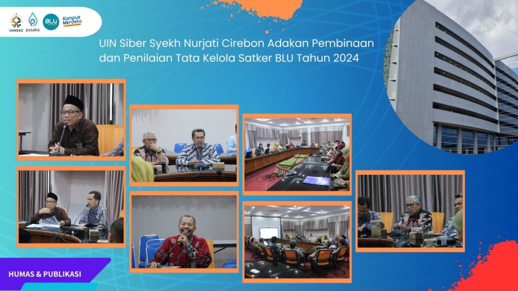 UIN Siber Cirebon – Menindaklanjuti Surat Sekretaris Jenderal Nomor: B-2145/SJ/B.III.I/KU.01.1/07/2024 tanggal 2 Juli 2024 tentang Pembinaan/Koordinasi dan Penilaian Tata Kelola Satker BLU, UIN Siber Syekh Nurjati Cirebon mengadakan kegiatan Pembinaan dan Penilaian Tata Kelola Satker BLU IAIN Syekh Nurjati Cirebon tahun 2024. Acara ini berlangsung pada Kamis hingga Jumat, tanggal 4-5 Juli 2024, bertempat di Gedung Siber UIN Siber Syekh Nurjati Cirebon Lantai 8.