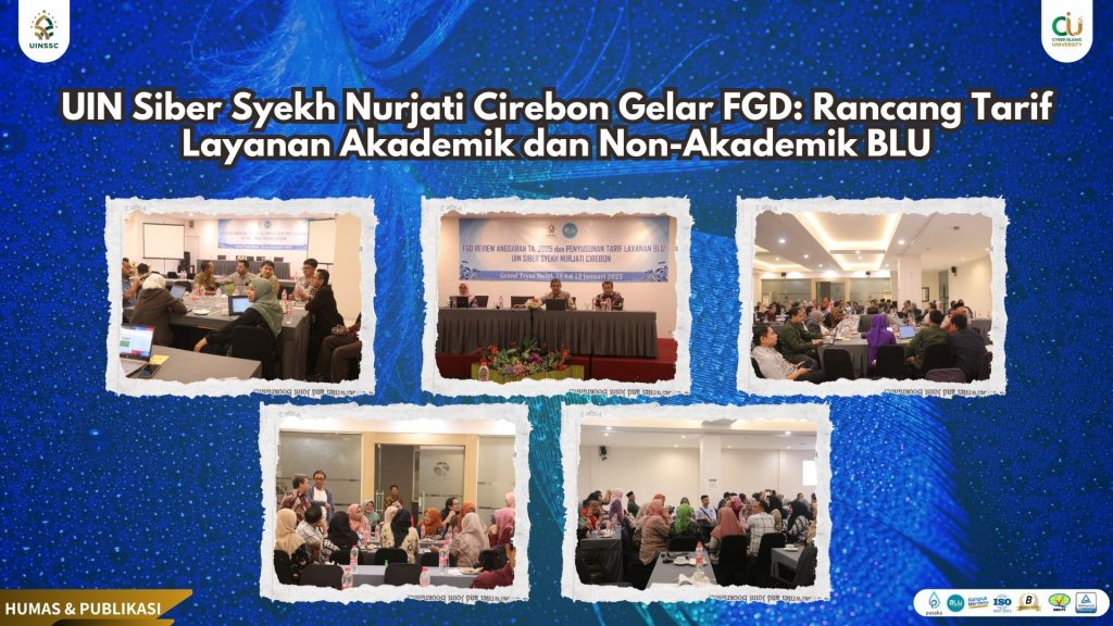 UIN Siber Cirebon – Universitas Islam Negeri (UIN) Siber Syekh Nurjati Cirebon, juga dikenal sebagai Cyber Islamic University (CIU), mengadakan Focus Group Discussion (FGD) dengan tema Review Anggaran Tahun Anggaran 2025 dan Penyusunan Tarif Layanan Badan Layanan Umum (BLU). Acara ini berlangsung selama tiga hari, 16-18 Januari 2025, bertempat di Grand Tryas Hotel, Cirebon.