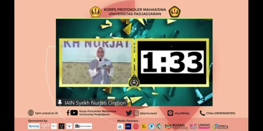Prestasi membanggakan diraih Mita Sri Wahyuni. Mahasiswi Jurusan KPI Fakultas Ushuluddin Adab dan Dakwah IAIN Syekh Nurjati Cirebon berhasil mencatatkan namanya menjadi juara 2 Protocol Fair 2020 yang digelar Universitas Padjadjaran (UNPAD), Bandung, Minggu (15/11). Keberhasilan Mita membawa harum nama kampusnya di kancah Jawa Barat