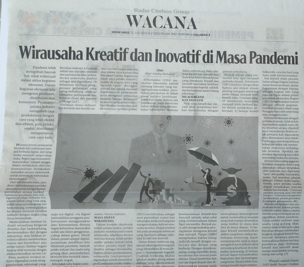 Wirausaha Kreatif dan Inovatif di Masa Pandemi (Radar Cirebon/12 Juli 2021)