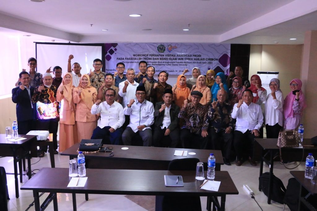 Fakultas Ekonomi dan Bisnis Islam (F-EBI) Institut Agama Islam Negeri (IAIN) Syekh Nurjati Cirebon menggelar kegiatan Workshop Persiapan Visitasi Akreditasi Podi pada Fakultas Ekonomi dan Bisnis Islam IAIN Syekh Nurjati Cirebon dengan mengusung tema “Peningkatan Mutu Akreditasi Program Studi di Lingkungan Fakultas Ekonomi dan Bisnis Islam (F-EBI) dalam Menyongsong Cyber University” bertempat di ballroom hotel Grage Cirebon selama 2 (dua) hari tanggal 26 s/d 27 Juni 2023. Kegiatan workshop tersebut dihadiri Prof. Dr. H. Aan Jaelani, M. Ag (rektor), Prof. Dr. H. Jamali, M. Ag (warek II), Prof. Dr. H. Abdus Salam, DZ, MM (guru besar F-EBI), Dr. H. Didi Sukardi, M. H (Dekan F-EBI), unsur pimpinan F-EBI, tenaga pendidik, tenaga kependidikan dan tamu undangan. Senin (26/06/23)